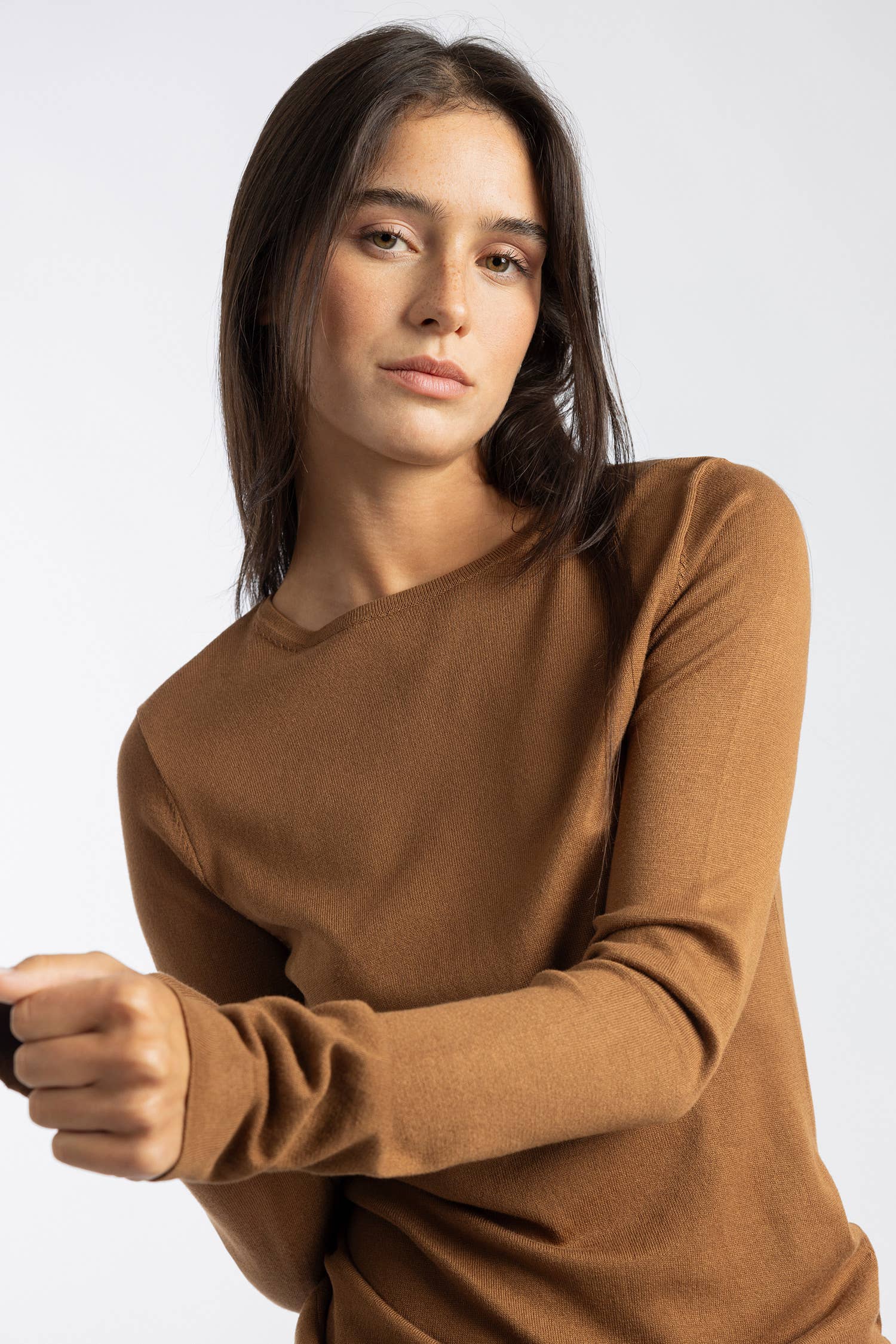 ARIA LIGHT KNIT ROUND NECK SWEATER - CAMEL
