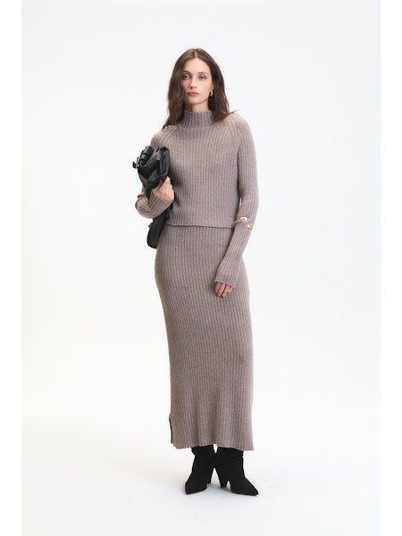 The RAINA KNIT DRESS brings polish and comfort together in one streamlined silhouette. Crafted in the same soft knit as the matching cropped sweater, this dress is ideal on its own with boots and a leather jacket or layered under the Raina Sweater for a chic monochrome look.