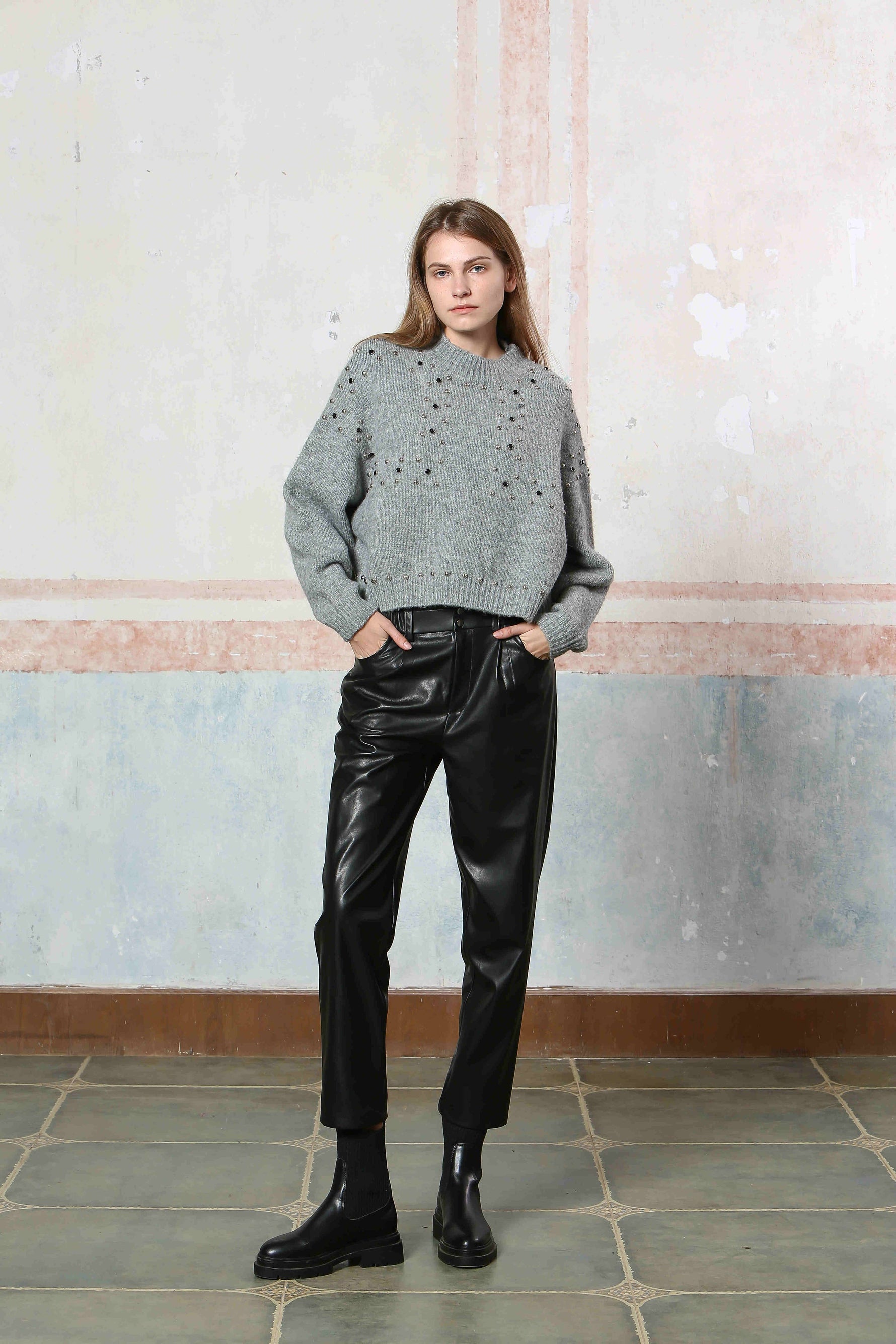 Unit price perPolished but easy to wear, the KIRA LEATHER TROUSER gives you that streamlined faux-leather look without sacrificing comfort. Cut with a high waist, straight leg, and ankle-grazing length, it shapes beautifully through the hip while leaving room to move. Front pockets and a classic zip-and-button closure make it an everyday hero—perfect with chunky knits, crisp shirts, or a simple tee.