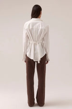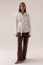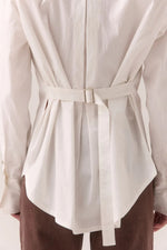 Unit price perThe PRIMARY SHIRT is a crisp, elevated essential with styling potential built right in. Crafted from a cotton-blend fabric, this oversized long-sleeve shirt features a concealed button front, dropped shoulders, and wide cuffs for structure. The stitched-in waist belt with silver buckle lets you cinch the silhouette or leave it loose for a modern, borrowed-from-the-boys look. Designed to transition effortlessly from desk to dinner.