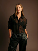 Unit price perThe HARLOW SHEER SHIRT brings a modern elegance to sheer layering. With its point collar, long sleeves, and buttoned front, this relaxed piece elevates everything from skirts to trousers.