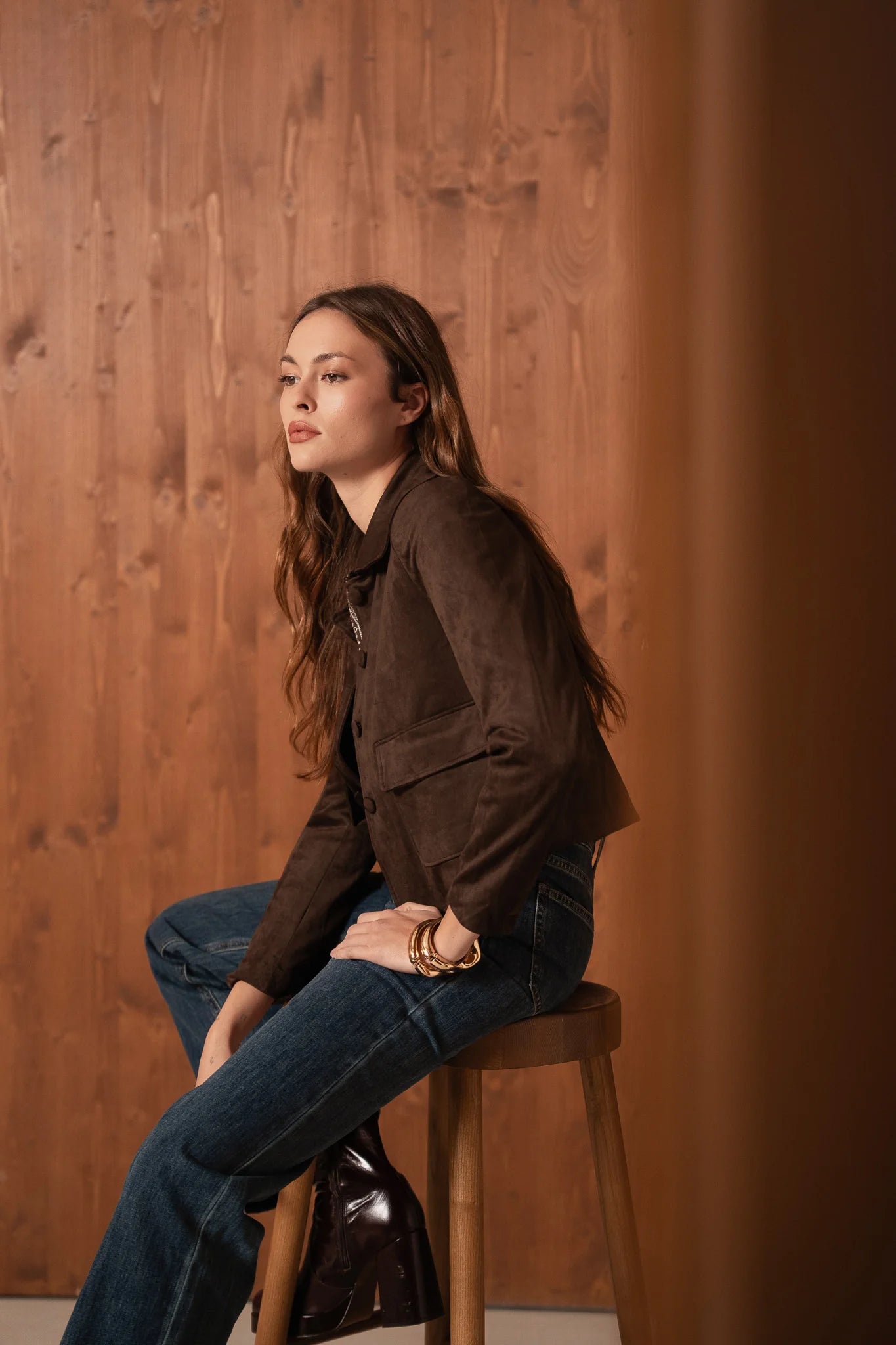 Clean, refined, and timeless, the DAISY JACKET is the kind of sueded layer that instantly elevates a wardrobe. Its straight, minimalist cut strikes the perfect balance between sophistication and ease, while the soft faux-suede texture mimics real suede without any animal cruelty. Light shoulder structure gives it a polished silhouette that pairs effortlessly with both casual and dressed-up looks.