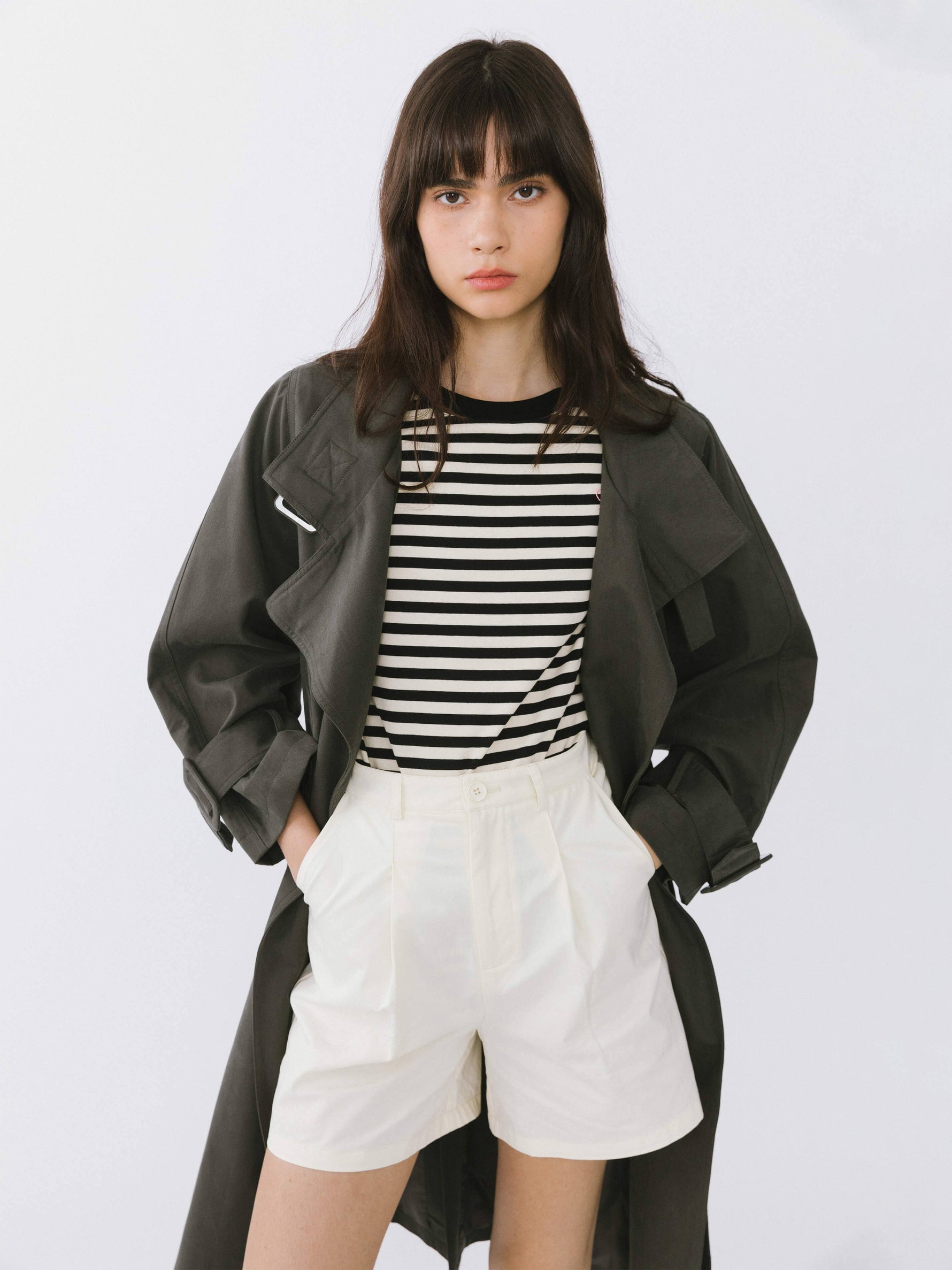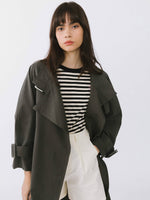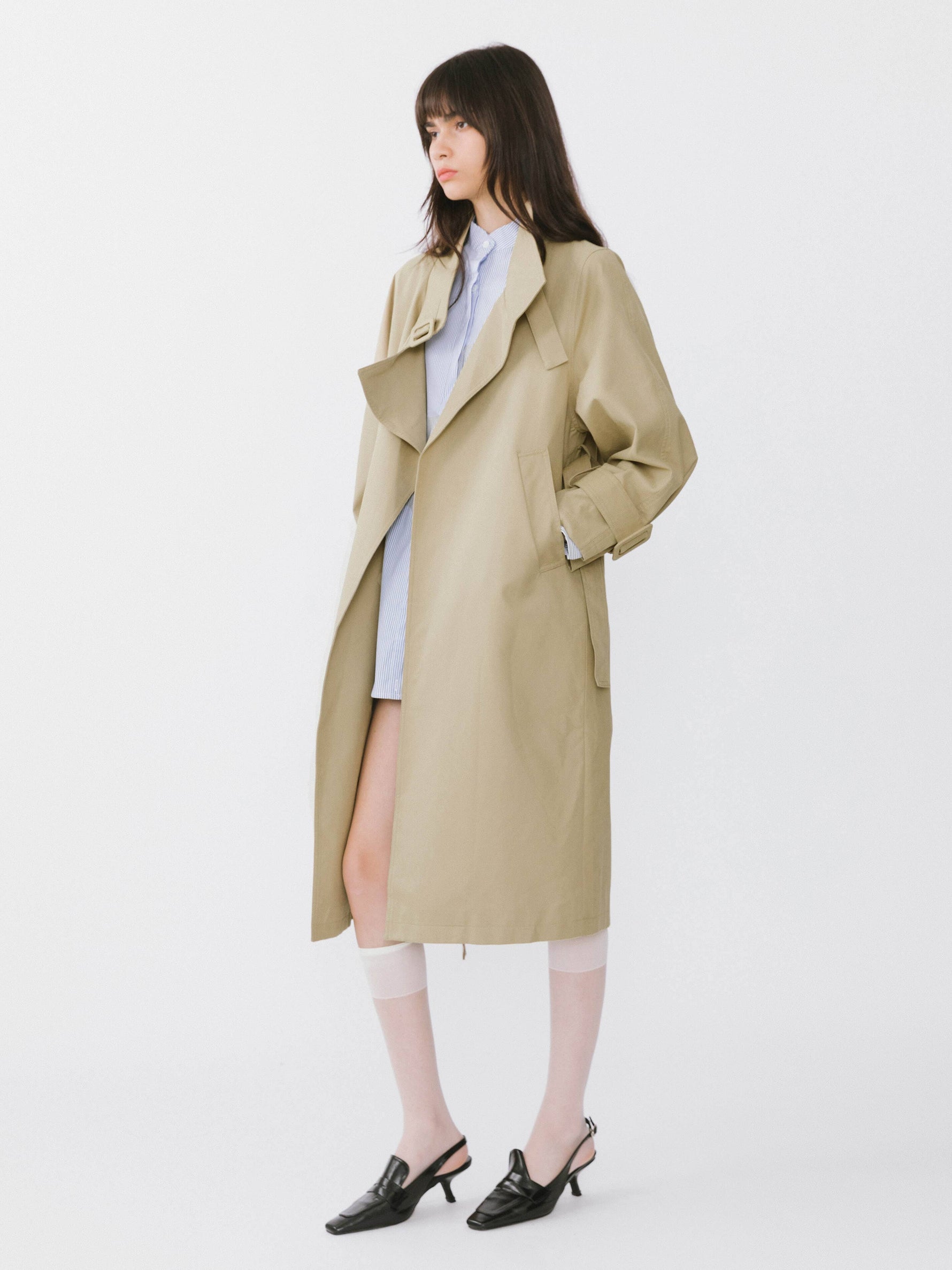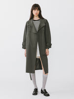 Unit price perA modern take on the classic trench. This sleek, structured coat features a sculptural funnel neck and front overlay detail that instantly elevates any outfit. Designed with raglan, two-piece sleeves and belted accents at the collar and cuffs, it balances utility with sophistication. Crafted from a cotton–lyocell blend and fully lined for comfort.