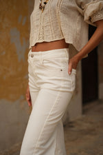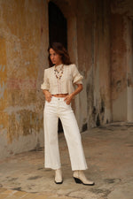 Classic meets cool in the VIENNA JEANS, a mid-rise denim staple designed with front pleats for a polished touch. The wide-leg cut flares gently from the hip to the ankle, creating a silhouette that feels effortlessly put together. A modern must-have for casual chic styling—wear them with a tucked blouse, structured vest, or your favorite knit.