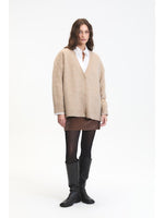 Unit price perCozy, oversized, and perfect for layering, the EASTON CARDIGAN is a textured staple for cool days. Designed in a chunky knit blend with recycled fibers, this beige sweater features an open front, roomy sleeves, and a beautifully nubby finish that makes any outfit feel elevated.