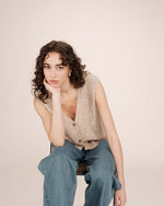 Unit price perWarm yet airy, the SANTA CARDIGAN brings contemporary edge to cooler days. Crafted from a cozy mohair and wool blend, it’s sleeveless with a V-neck and buttoned front. Side slits and refined shaping make it ideal for layered styling—whether worn solo or with the coordinating SANTIAGO LONG CARDIGAN.