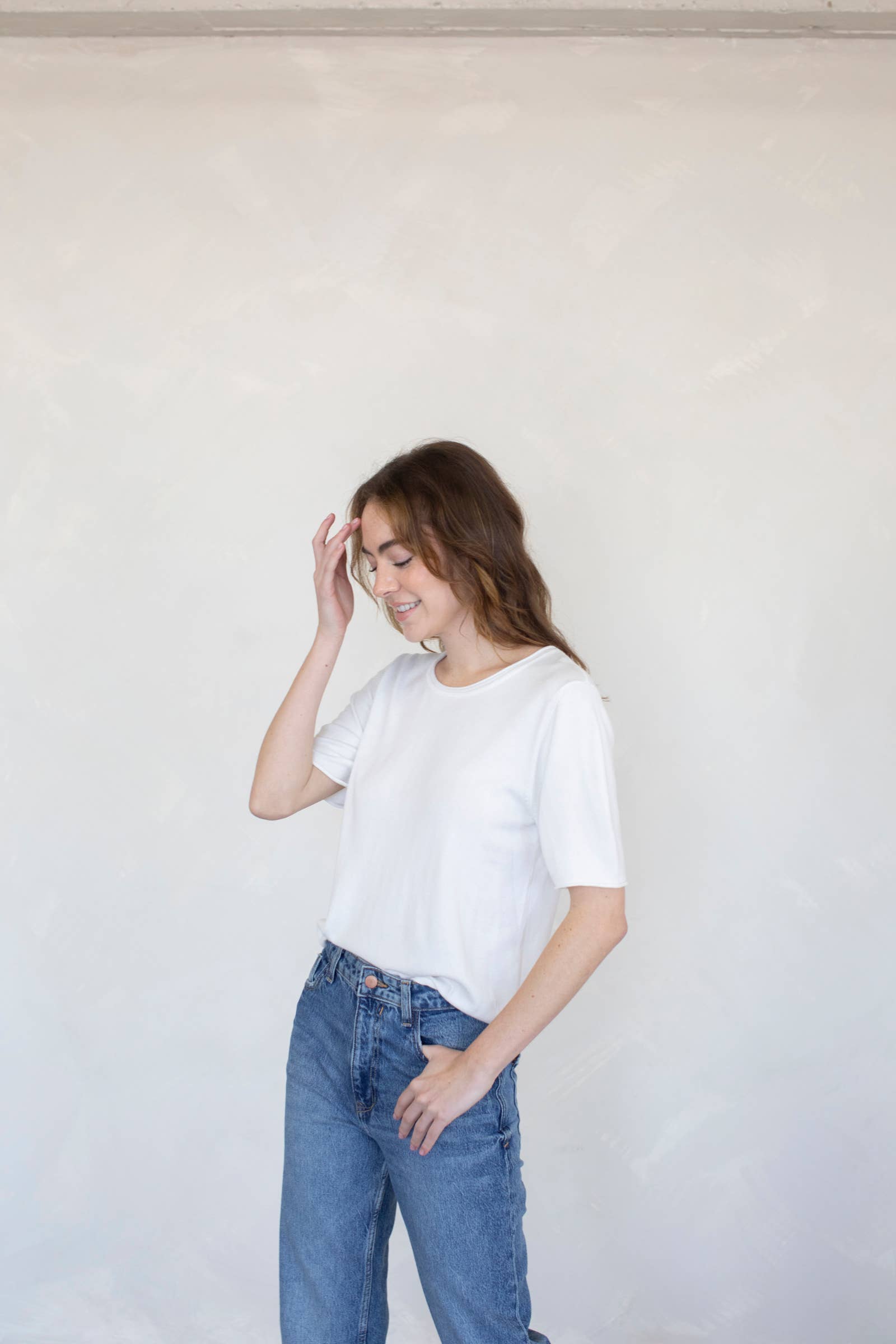 Unit price perThis JADA SWEATER TEE is a simple everyday knit top that is a perfect substitute for your go-to white t-shirt. It features longer sleeves and subtle draping at the shoulders for an elevated touch. Perfect for transitional weather, it’s great for layering or wearing on its own