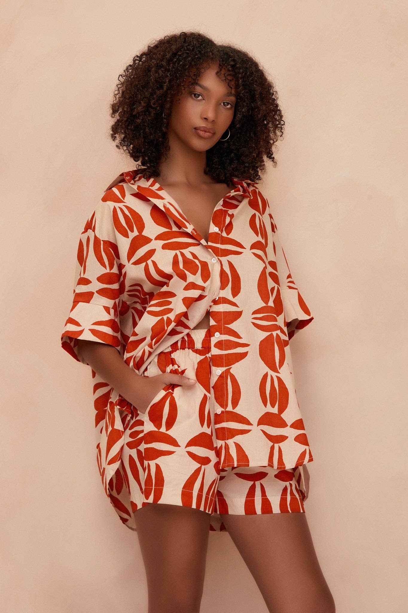 The KAI SHIRT is designed in Australia and handcrafted with care for an exceptional fit and feel. This oversized shirt is the perfect balance of comfort and style. Pair with the matching KAI crop and matching pant or short for an eye catching combination!